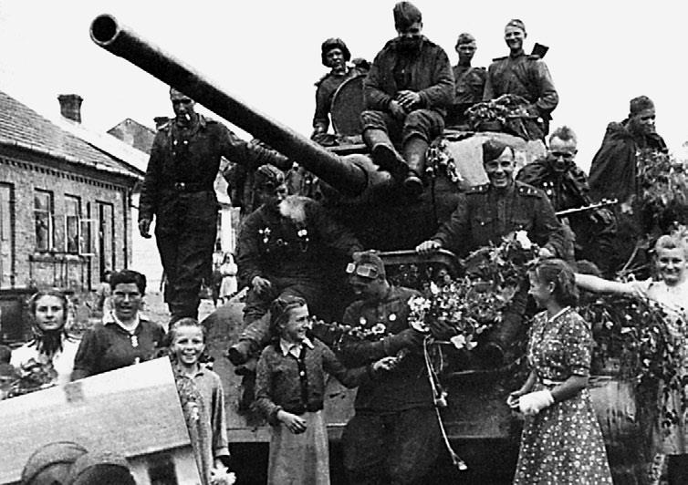Т-34-85 младшего лейтенанта А.П. Оськина на улице г. Оглендув. Август 1944 года