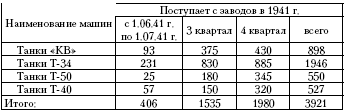 Учитывая выпуск танков заводами промышленности с 1.06.1941 г. по 1.01.1942 года, а именно: