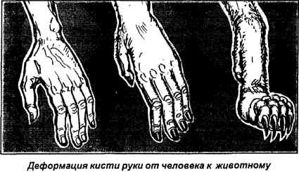 Если сравнивать человека и четвероногое животное, то можно заметить следующее. У человека руки сгибаются к телу, а ноги от тела. Это и понятно. Руки созданы, для того чтобы что-то брать и за что-то цепляться, а ноги для того, чтобы отталкиваться от земли при ходьбе. Иначе дело обстоит у типичного четвероного животного. Оно опирается всеми четырьмя конечностями на землю и отталкивается ими при передвижении. В соответствии с четвероногим способом передвижения длина плеча, предплечья, а также голени и бедра у этих животных сокращается. Зато увеличивается длина кисти и стопы. При этом активно действует запястье и голеностопный сустав ноги. Запястье, начинает выполнять роль колена на передней ноге, что обеспечивает отталкивание от опоры. Вовлечение в активное движение тазобедренного, коленного и голеностопного суставов задней ноги обеспечивает хорошую прыгучесть. (Обычно четвероногие опираются на пальцы, т. е. являются пальцеходящими.) Четвероногие животные явно вторично приспособили морфологию двуногого существа, доставшуюся им от их предков к передвижению на четырёх точках опоры.