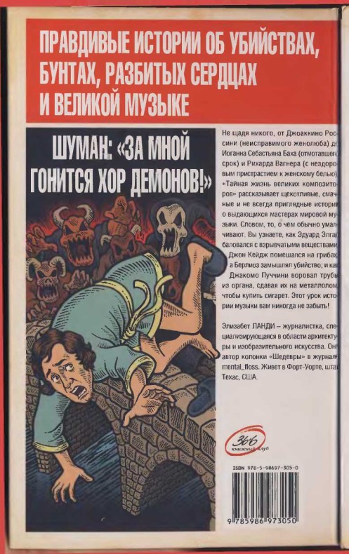 На самом деле многие композиторы вели жизнь буйную и возмутительную. Моцарт сыпал непристойностями, Шуман страдал сифилисом, а Бернстайн обладал непомерным самолюбием. «Хорошо темперированный клавир» Бах написал за решеткой, Вагнер сотворил «Лоэнгрина», скрываясь от назойливых кредиторов, а Пуччини сочинял «Мадам Баттерфляй» на фоне семейного кризиса, когда жена композитора норовила прищучить его (очередную) любовницу. Ни одна из подобных деталей никогда не проникнет в скучные и благонамеренные концертные программки. Ну так теперь у вас есть эта книга.