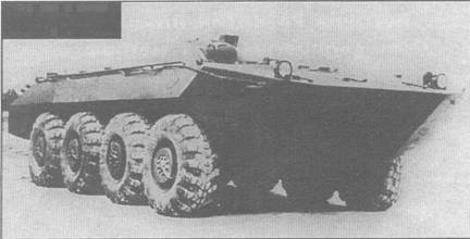 Машина имела боевой вес 13 т. Экипаж и десант-10 человек. Корпус герметичный, закрытый, противопульного бронирования с кормовым расположением силовой установки в составе двух карбюраторных двигателей мощностью 92 кВт каждый. Трансмиссия механическая, шины бескамерные регулируемого давления. Вооружение в башне – 73-мм гладкоствольная пушка, спаренный с ней пулемет калибра 7,62 мм и ПТУР «Малютка» с четырьмя ракетами. Максимальная скорость движения по шоссе – 80 км/ч, по воде – 10 км/ч. Запас хода по шоссе – 700 км.