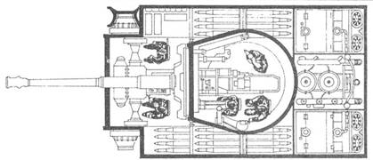 Почти третью часть боекомплекта – 22 унитарных снаряда в горизонтальном положении – разместили в большой кормовой нише башни вблизи казенника пушки. Вместе с механизмом заряжания это повышало боевую скорострельность и облегчало работу заряжающего.