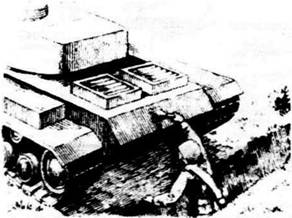 Пехотой воюющих сторон применялись гранаты-мины и других типов. Англичане, например, имели гранату «№ 75» («Хоукинс Мк1») фугасного действия с плоским корпусом длиной 165 и шириной 91 мм. Сверху корпуса находилась нажимная планка, под ней – два химических взрывателя-ампулы. При разрушении ампул нажимной планкой в результате химической реакции образовывалось пламя, вызывавшее взрыв капсюля- детонатора, затем срабатывал дополнительный детонатор, а от него – взрывчатое вещество боевого заряда мины. «Хоукинс» подбрасывалась под гусеницу танка или колесо бронемашины, использовалась в минных полях. Подобные гранаты укладывали на салазки, привязанные к шнурам, получая таким образом «подвижную» мину, «подтягиваемую» под движущийся танк. Плоские противотанковые мины на бамбуковых шестах и «подвижные» на салазках широко и не без успеха применяли группы пехотинцев – истребителей танков в японской армии: нашим танкистам пришлось столкнуться с этим еще на Халхин-Голе в 1939 г.