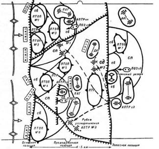Принципиальная схема организации ПТО стрелковой дивизии в обороне под Сталинградом летом 1942 г.