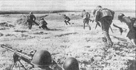 Бронебойщики в контратаке. Юго-западный фронт. Лето 1942 г. Обратим внимание на 12,7-мм однозарядное ПТР слева.