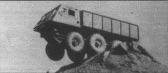 Немецкий плавающий автомобиль EWK Bison (рис. З) с колесной формулой 4x4 впервые был показан в 1982 г. на авиационной выставке в Ганновере. Он выполнен с размещением дизельного двигателя воздушного охлаждения за кабиной управления над колесами передней оси. Большая по площади грузовая платформа (более 14 м^2) имеет откидные борта, расположенные, как и двери