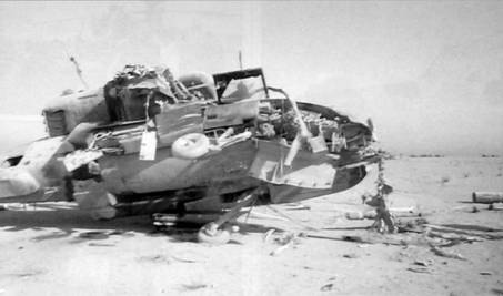 «Апач Лонгбоу» с серийным номером 99-5135 24 марта был сбит. Вообще история с этой машиной – чистой воды детектив. Телевизионная картинка размахивающего древней винтовкой федаина на фоне невредимого боевого вертолета обошла весь мир. Иракцы утверждали, что якобы сей достойный мусульманин, Али Обейд Менгаш, сбил «Апач» из дедовского самопала. Генерал Томми Франкс заявил, что «происшествие не является следствием действий фермера». Видимых повреждений машина не имеет. Как бы то ни было, но новейший вертолет попал в руки противника, экипаж «Апача» попал в плен.