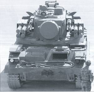 На боевой машине устанавливалась башня, которая вращалась горизонтальным приводом наведения. В ней размещались два радиолокатора — станция обнаружения, опознавания и целеуказания и станция сопровождения цели, оптический прицел, пусковые установки ракет, две 30-мм пушки, вертикальные привода наведения.