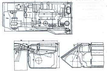 Вариант кормового расположения МТО танка «Объект 432» с продольной установкой двигателя 5ТДФ. Проект ВНИИ-100.