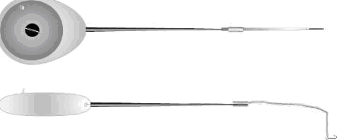 Кивок с противовесом несколько сложнее в изготовлении, но проще в настройке. Схема его понятна из рис. 4. Пластинка кивка, одинаковая на всем протяжении по ширине и толщине, изготавливается из тонкой стали, к одному концу которой крепится картечина, а к другому – колечко. При выборе материала для пластинки я исходил исключительно из простоты крепления к ней свинцовой картечины и колечка. Но в принципе подойдет и полимерный материал.