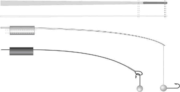 Настоящая удочка в сочетании с лавсановым кивком, леской диаметром 0,060,08 мм и тоньше, маленькой вольфрамовой мормышкой не утомляет руку при игре. Корректное сочетание упругости кивка, удельного веса мормышки и диаметра лески позволяет при ловле на глубине до 4-6 м «вести» мормышку на остаточных колебаниях. Иначе говоря, спортсмену не приходится постоянно совершать мучительные покачивания кистью руки. Необходимо лишь поддерживать игру мормышки, периодически сообщая затухающим колебаниям дополнительный импульс. Основная роль в игре принадлежит кивку.