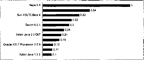 Рис. П1.3. Оценка производительности XSLT-процессоров в соответствии с XSLTMark