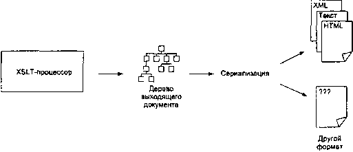 Сериализация как раз и является процессом создания физической интерпретации результирующего дерева, и если и эта задача делегируется XSLT-процессору, то преобразованию под силу контролировать физический вывод генерируемого документа (рис. 2.3).