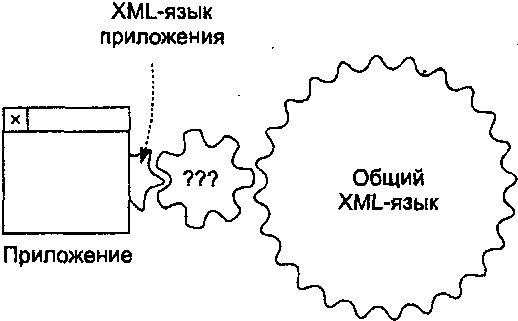 Таким образом, для интеграции этого приложения в общую схему потребуется лишь обеспечить "перевод" данных с XML-языка приложения на общий XML-язык и обратно (рис. 2.10).