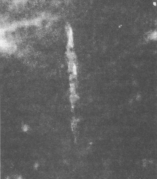 Рис. 4-27. Крупный план «Шпиля в Море Кризисов» с официального снимка «Аполлона» AS16-121-19438. Обратите внимание на поперечные балки, пересекающиеся в «шпиле» под утлом 90° — части матовой геометрической «сетки», окружающей этот загадочный объект.