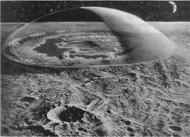 Рис. 4-29. Художественная реконструкция стеклянного лунного купола над кратером, идентичная фотоизображению кратера Пикара (рис. 4-28).