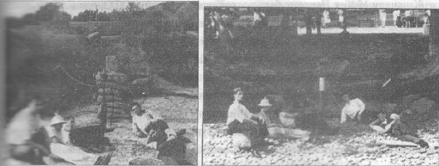 Рис. 5-21. Испытание жидкотопливной ракеты в Арройо Сека, 31 октября 1936 г. (слева) и главные члены группы GALCIT — в том числе Парсонс (в нижнем правом углу); (справа) «сцена рождения» — воссоздание испытаний в Арройо Сека, — проходящая на каждый Хеллоуин в JPL, отмечается как «день рождения лаборатории».