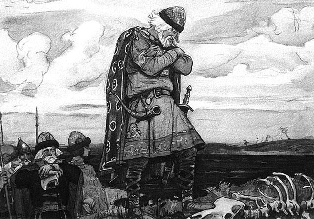 Из мертвой главы гробовая змия,Шипя, между тем выползала…В. М. Васнецов. Олег у костей коня. 1899 год