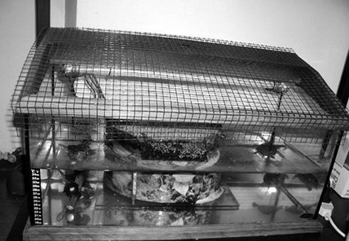Крышка террариума представляет собой ящик с невысокими стенками и должна соответствовать по размеру донному ящику. В одной из ее стенок следует проделать отверстие, через которое будет проходить воздух. В крышке обычно закрепляют осветительные и вентиляционные приборы.