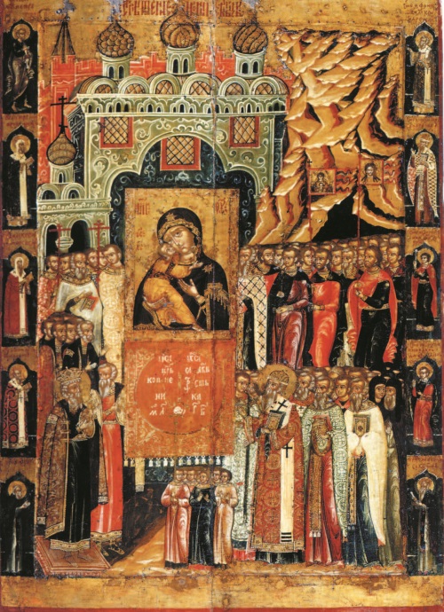 Сретение Владимирской иконы Божией Матери в Москве с избранным и святыми