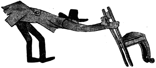 Увидев в своей комнате человека, уносящего опечатанный стул, Авессалом Владимирович взмахнул только что выглаженными у портного брюками, подпрыгнул и заклекотал: