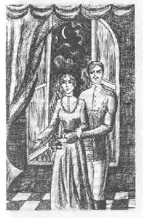 Она, демонстративно выскользнув из-под руки опешившего Сокольского, отбегает в дальний конец сцены, увлекая за собою и свою молчаливую подругу. Отсюда девушки соскакивают на пол и прячутся в глубокой нише окна, за шелковой занавеской. Оно раскрыто настежь, и ветерок слабо колышет занавеску. Невидимые никому из присутствующих в зале подруги могут здесь перемолвиться словом.