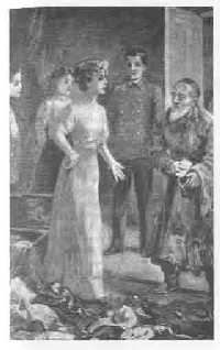 Боб с видом настоящего оценщика взбрасывает на руке ту или другую вещь и торгуется, как извозчик. Но татарин неумолим. Дает самые мизерные цены, несмотря на то, что Боб его величает и "вашим сиятельством", и «князем», и «светлостью» даже. Но «светлость» уперлась на своем. За бархатное платье он дает пять рублей, за шелковое тоже пять, за ротонду десять и все косится на новенький костюм Боба.