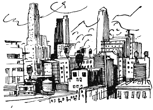 Утром, проснувшись на своем двадцать седьмом этаже и выглянув в окно, мы увидели Нью-Йорк в прозрачном утреннем тумане.