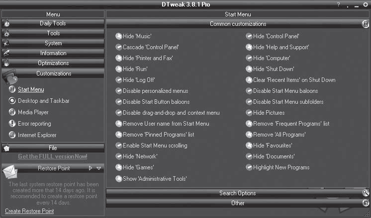 Данный твикер реестра содержит множество возможностей по работе с операционной системой и компонентами компьютера (рис. 5.30), однако в данной книге мы их рассматривать не будем. В контексте этой главы мы рассмотрим только возможности настройки операционной системы, которые он предоставляет.