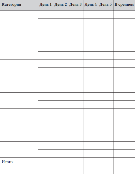 Когда все заполните и введете данные, рассчитайте, сколько времени вы тратите на каждую категорию в процентном соотношении и в среднем (в день и неделю).