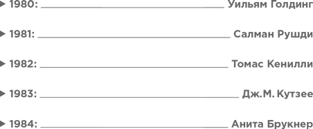 Изучите список лауреатов Букеровской премии, затем закройте его и посмотрите, сколько книг вы можете написать ниже, там, где указаны только имена авторов.
