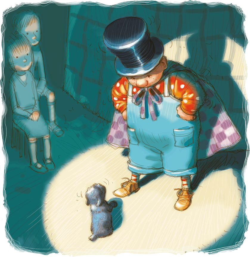 – Сейчас вы все увидите лучшего в мире фокусника и учёную собаку Альберг, – торжественно произнёс он.