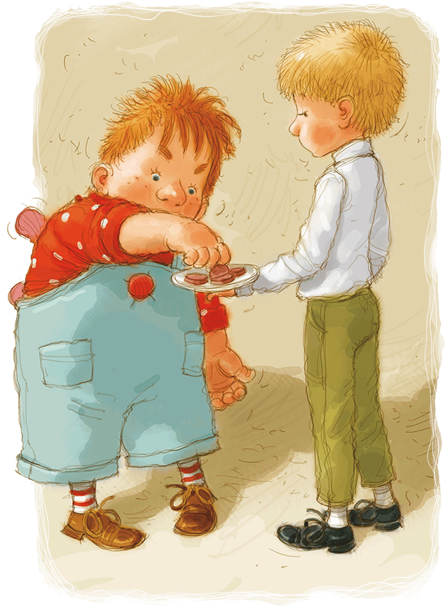 Как-то после обеда Малыш сидел у себя в комнате и возился со своей коллекцией марок. Перед ним лежал альбом и целая куча новых марок, которые он собирался разобрать. Малыш усердно взялся за дело и очень быстро наклеил все марки. Все, кроме одной, самой лучшей, которую нарочно оставил напоследок. Это была немецкая марка с изображением Красной Шапочки и Серого волка, и Малышу она очень-очень нравилась. Он положил её на стол перед собой и любовался ею.