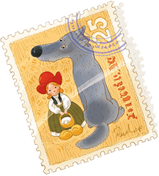 – Ой, гляди, гляди, вот она, Красная Шапочка! – закричал Малыш и кинулся, чтобы поднять запылённую марку.