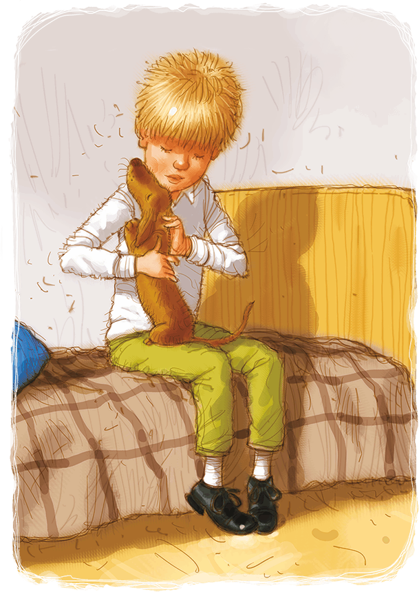 Когда «скорая помощь» уехала, Малыш пошёл к себе в комнату. Ведь там был Бимбо. И Малыш взял щенка на руки.