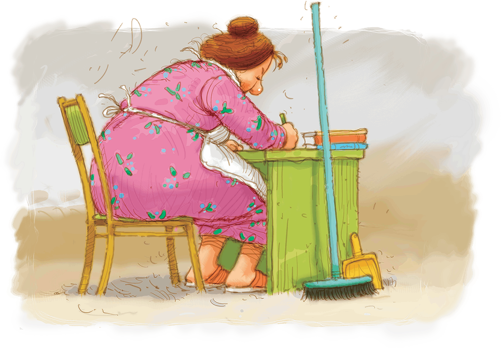 Фрёкен Бок отшвырнула щётку и совок, села за письменный стол Малыша, взяла бумагу, ручку и принялась писать.
