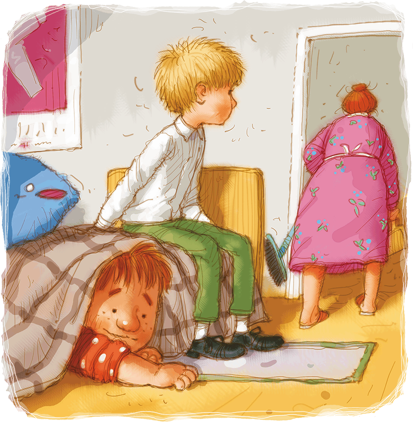 Фрёкен Бок, исполненная рвения, тут же побежала отправить письмо. Малыш заглянул под кровать, чтобы выяснить, что же делает Карлсон. Он преспокойно лежал там, и глаза его сияли. Он выполз, весёлый и довольный.