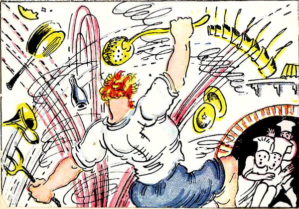 Не потанцуешь, конечно, и с горя. Но пустые желудки и горе были только у тех, кто собирался сегодня в рабочих кварталах, чтобы снова идти в поход на Дворец Трех Толстяков. А франты, дамы, сыновья и дочери обжор и богачей чувствовали себя превосходно. Они не знали, что гимнаст Тибул строит в полки бедный, голодный рабочий люд; они не знали, что маленькая танцовщица Суок освободила оружейника Просперо, которого только и ждал народ; они мало придавали значения тем волнениям, которые поднялись в городе.