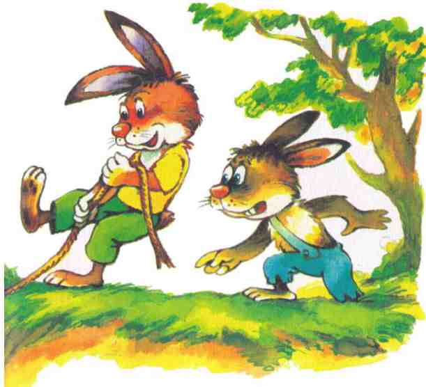 Пошептались зайцы между собой, скрылись. Долго не показывались. Вернулись с верёвкой из лыка.