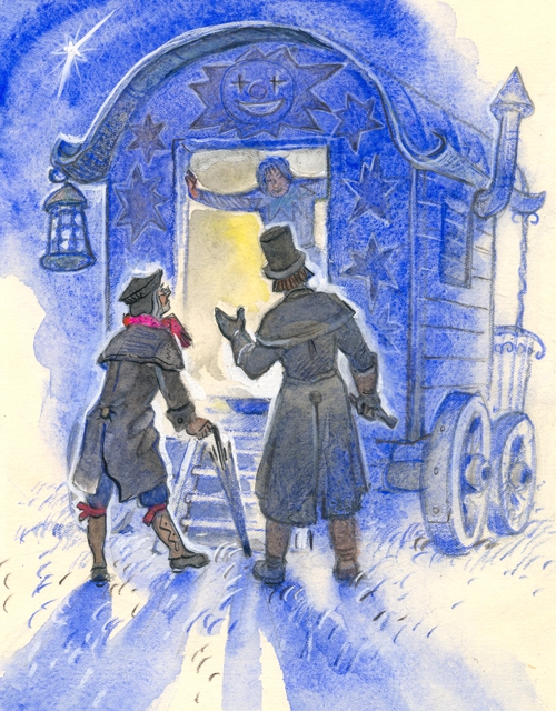 И докторът, и кочияшът, и конят намериха убежище, вечеря, почивка. Къщата на колела излезе гостоприемна къща. В нея живееше странстващата трупа на чичо Бризак.
