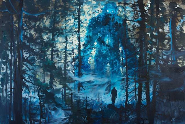 Пересиливая волнение, я подошёл к одной из картин. Лес. Ночь. Размытая фигура регата.
