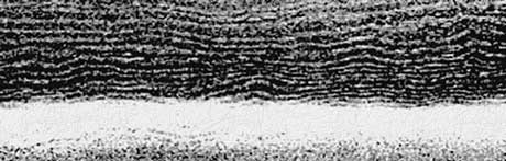 Здесь же следует отметить одну интересную особенность хоролуга: температура окончательного завершения мартенситного превращения (т. е. финализация закалки) находится намного ниже нуля, так что после водяной или масляной ванны клинок следует погрузить в жидкий азот. Это заставляет по-особому расценивать слова легенды, гласящей, что славяне невероятно дорожили оружием и не соглашались продавать его ни за какие деньги, ибо «удается оно не каждый год». Можно предположить, что речь идет о редкостных, особо суровых зимах, хотя мороз в –30 или –40 °C нельзя считать достаточным аналогом купания в жидком азоте. Вот фрагмент хоролужного клинка.