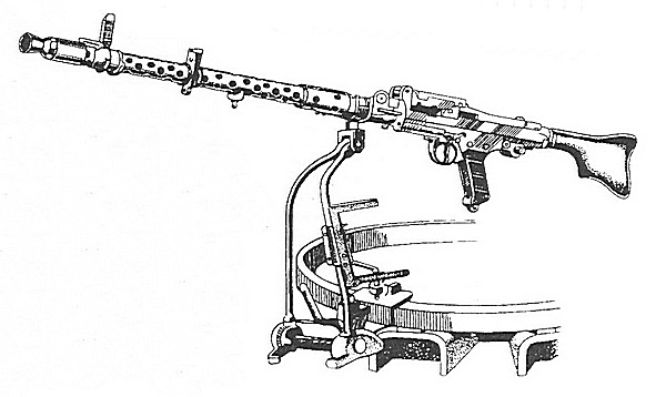 Зенитная установка пулемёта MG 34 на командирской башенке танка с помощью устройства Fliegerbeschutzger"at 42.
