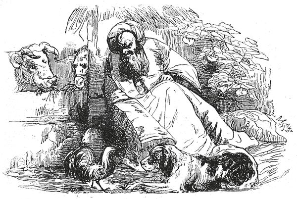 Таким образом, купец сказал: «Возьми осла и паши на нем целый день». Работники так и сделал, и, когда осел вернулся в стойло вечером, вол поблагодарили его за сделанное ему одолжение и за доставленную ему возможность отдохнуть целый день, но осел ничего ему не ответил, так как серьезно раскаивался. На следующий день пришедший пахарь опять взял осла и пахал на нем до самого вечера, и осел вернулся со стертой ярмом шеей и ослабевшим от усталости, а вол, посмотрев на него, снова стал его благодарить и хвалить. Осел вскричал: «Как хорошо мне жилось, и погубил я себя, вмешавшись в чужие дела!» Затем он сказал волу: «Теперь ты знаешь, что я даю хорошие советы: я слышал, как хозяин наш говорил работнику, что если вол не встанет, то сведи его к мяснику, чтобы заколоть, и из кожи сделать хоть нату [14] поэтому я очень за тебя опасаюсь и предупреждаю тебя; да будет над тобою мир». Вол, услыхав это предостережение осла, поблагодарил его и сказал: «Завтра я вскочу как встрепанный». Он съел весь свой корм и даже облизал ясли. А хозяин подслушивал их разговор.