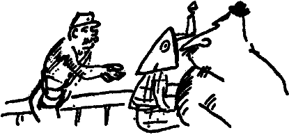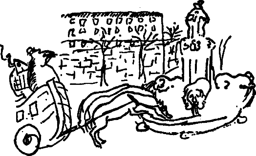 Глупыш: Почему бы Буадефру или Бийо не поступить как Панургу? Вот бы и сожгли громадные пни, чтобы на угольях от них зажарить своих барашков. Папаша Убю, это так неосторожно — ставить ваш омниубюс колесами на край фонтана!