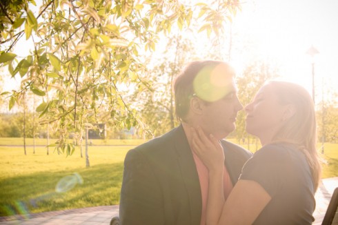 Это уже вариант посложнее… Вы наверняка замечали, что в контровом свете неплохо смотрятся веточки, листья, цветочки — так и просятся в кадр сладкие парочки, которых неплохо заснять целующимися под лучами солнышка. В таких случаях даже солнечные зайчики и пересветы не проблема, все работает на нашу конечную цель — передать не столько смысл, сколько эмоции… по крайней мере, такими, какими их видим мы.