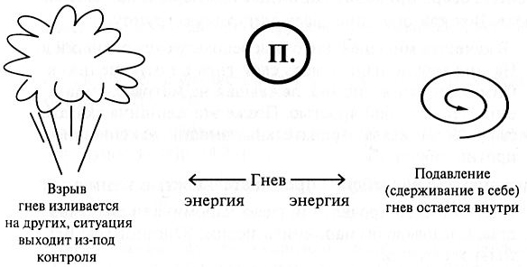 Рассмотрим рис. 9. Буква Побозначает проблему или вопрос, которые вызвали у подопечного гнев. Эмоциональная энергия не решает проблемы ни в одном из этих случаев, так как она направляется не на решение, а на (а) другого человека или (б) на самого себя. Обе эти реакции неверны.