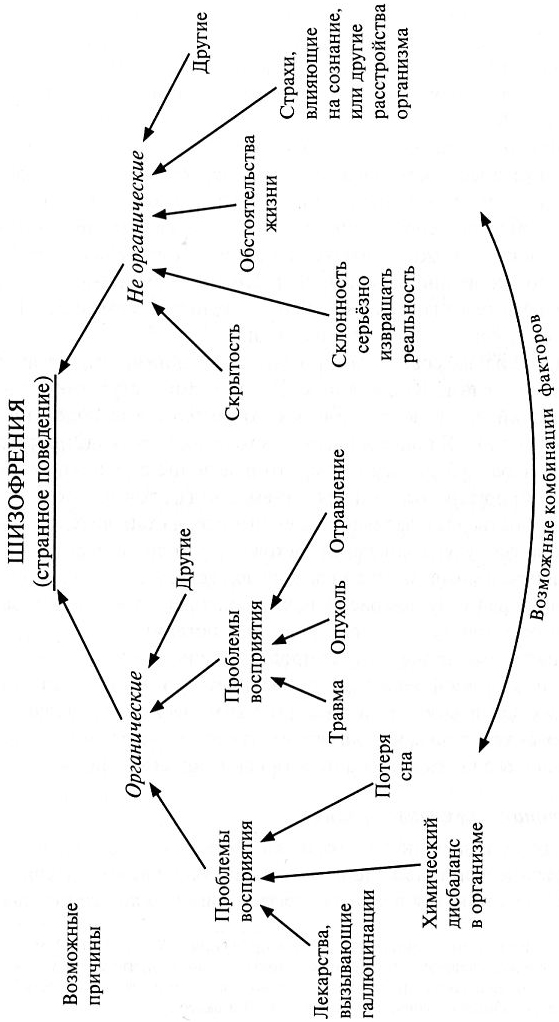 Диагноз «шизофрения» не определяет причины странного поведения. Он исключает воздействие химического дисбаланса, травм мозга или привычек влияющих на состояние человека. Следовательно, его необходимо оставить как неадекватный.