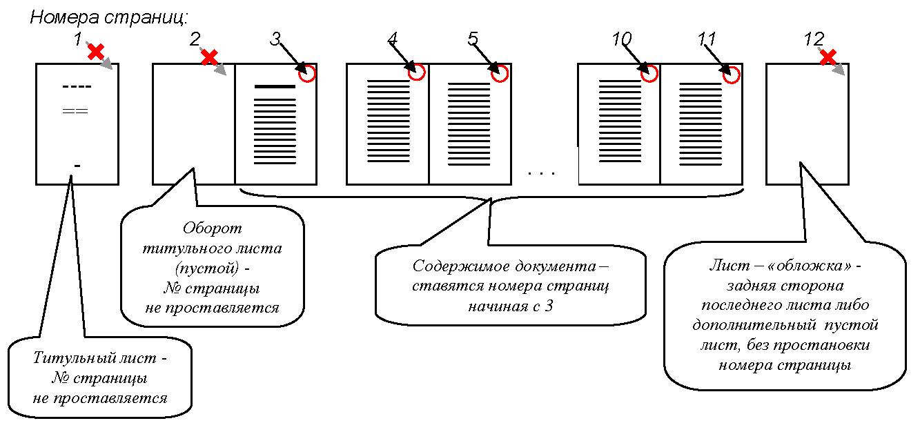 Нумерация страниц при односторонней печати документа (обратные стороны всех листов – пустые):