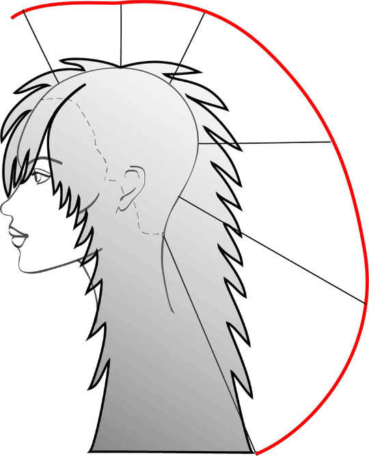 Далее, чаще мы строим углы оттяжки по отношению к вертикальной оси человека и гораздо реже относительно поверхности головы. Это происходит потому, что строение черепа каждого человека индивидуально, а принципы